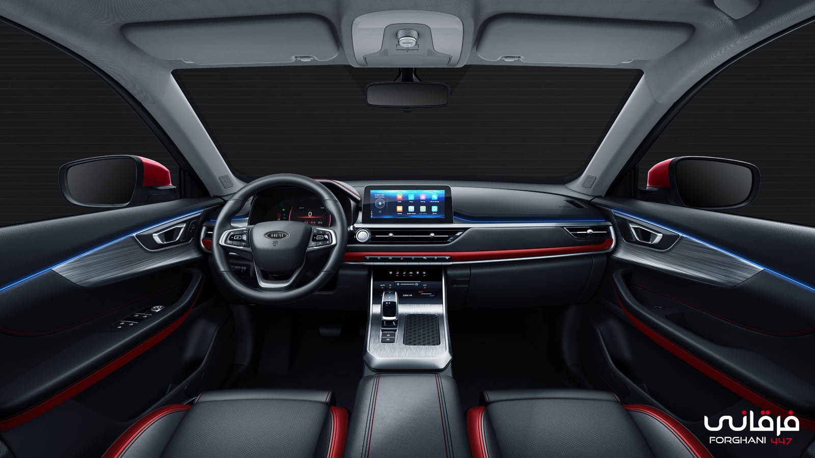 هنگام ورود به ماشین طراحی یک و زیبای در به چشم میاد ، دوخت قرمز رنگ، چرم و پلاستیک نرمی که در آن استفاده شده. مانیتور 10.25 اینچی روی داشبورد با طراحی بیرون زده به سبک اروپایی ها رو داریم که در کنار اون جلو آمپر کاملا دیجیتالی هستش . زیر مانیتور پنل های تهویه هوا و کنار آن دکمه استارت یا خاموش شدن ماشین هستش.در ادامه کلید هایی برای تنظیم مود های رانندگی ، تنظیمات مالتی مدیا و دوربین 360 درجه. سیستم تهویه مطبوع خودرو به صورت لمسی بوده تا راننده با تسلط بیشتری آن را تنظیم کند. در ادامه شیفترگیربکس به صورت برقی بوده و در کنار آن چایگاه شارژر وایرلس مشاهده می شود که در پایین آن جا لیوانی کار شده به همراه کول باکس که امکانات رفاهی را برای مخاطب فراهم کند.